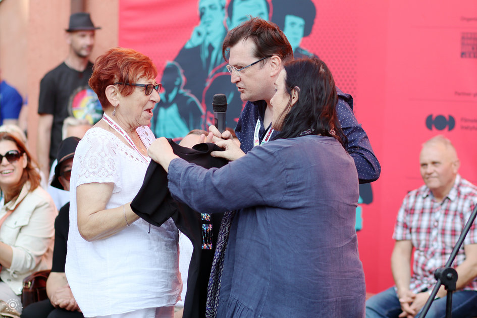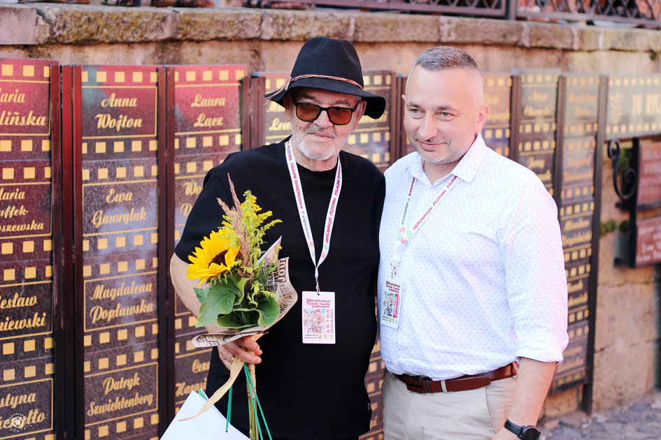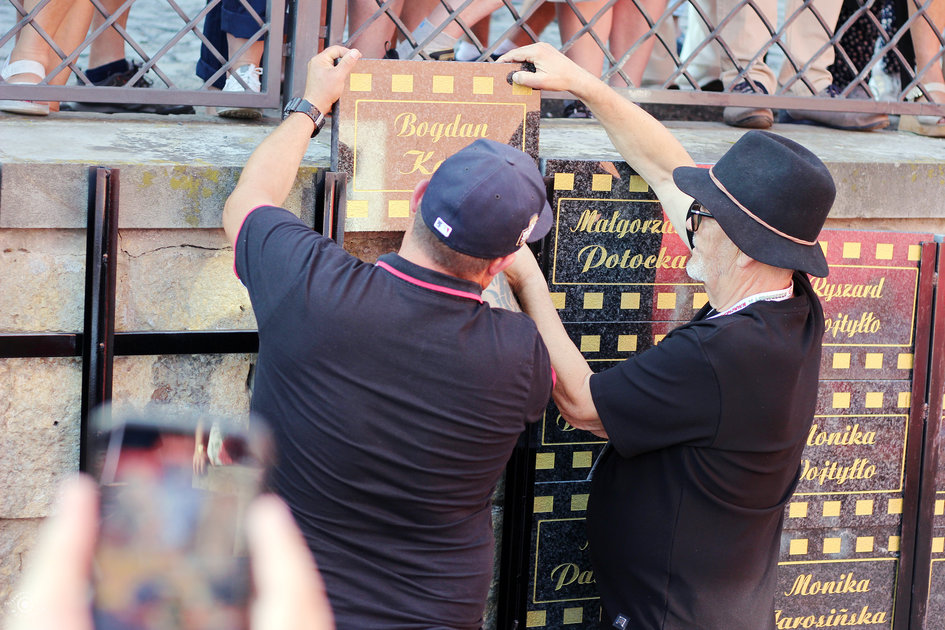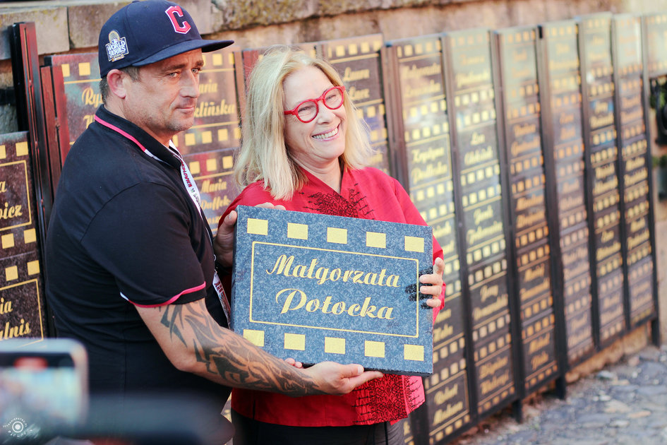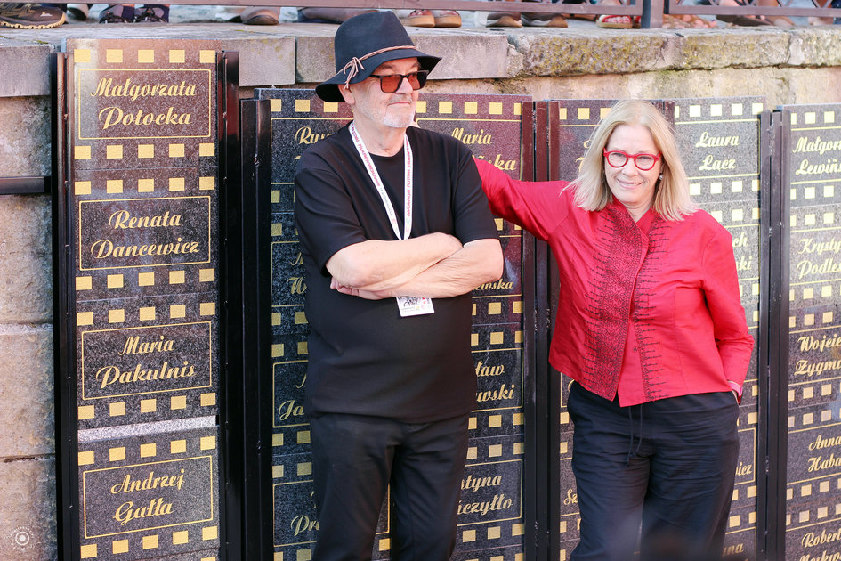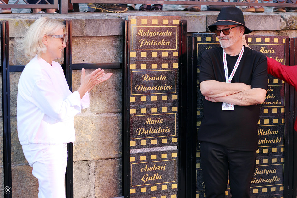Odsłonięcie nowych tablic w „Zaułku Filmowym im. Sylwestra Chęcińskiego” (Małgorzata Potocka, Bogdan Koca)